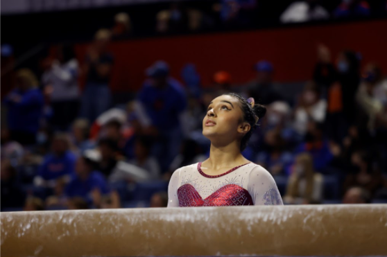 Three of Alabama’s first five scores on the balance beam were below 9.80, allowing the deficit to narrow. But it was a perfect 10 on the floor exercise by Florida’s Nya Reed that truly put the Gators within striking distance of a win. While a sold-out Stephen C. O’Connell Center of nearly 9,000 fans was cheering after Reed received her first-ever perfect score, Alabama junior Luisa Blanco had just begun her balance beam routine. Blanco was able to block out the noise and post a 9.950 score, which was the highest score on the balance beam from either team.